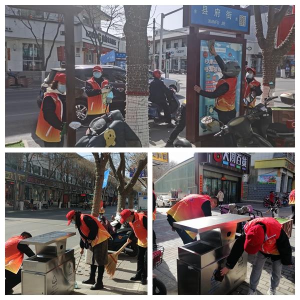 活动中,参加志愿服务活动的干部职工身着整齐的志愿者服装来到县府街,对沿线道路开展环境卫生大扫除,经过参加志愿服务干部职工的一次次认真清扫,一遍遍细心擦拭,使道路两边的路灯杆、垃圾桶、公交车站点面貌焕然一新,获得了过往市民的点赞。
