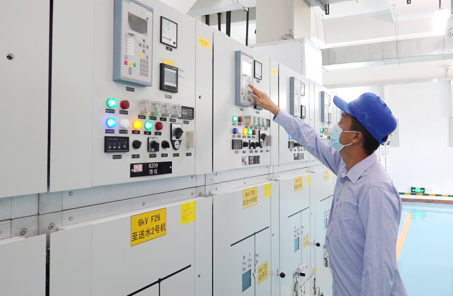 电力作为广州自来水公司最主要的能源消费,其中水泵用电占总用能的90%以上。为进一步提高设备运行效率,降低用电量,公司近年选用更符合当前生产情况的新型高效水泵和电机,运行时较旧水泵更贴合高效区,大大提升运行效率,节能降耗效果显著。2021年,广州自来水公司累计供水总量为16.9亿立方米,较历史最高水量的2019年增长约4100万立方米,用电总量较2019年减少约2880万度,呈现出供水总量上升、总体能耗下降的喜人形势。