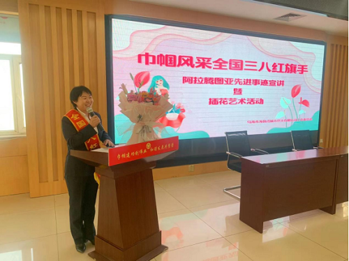 乌海市海勃湾城市供水有限公司开展巾帼风采全国三八红旗手阿拉腾图亚先进事迹宣讲暨插花艺术活动