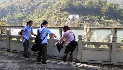一行人拿着火钳、扫帚等工具,围绕丫多河水库,开展保护饮用水源地水质的志愿服务活动,对水库周边的垃圾、杂物等进行清扫,用实际行动践行绿色发展理念。巾帼志愿者们发挥不怕脏不怕累的雷锋精神,有效提升了水库周边环境。