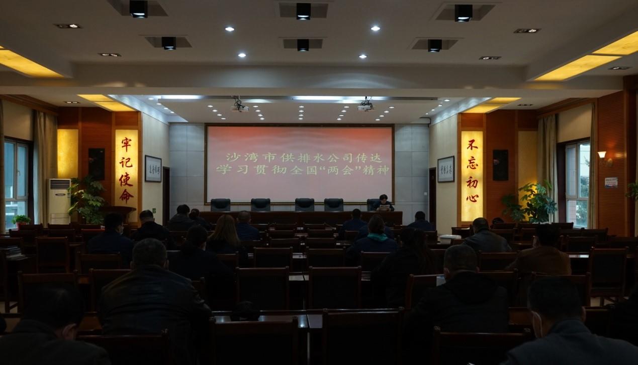 沙湾市供排水公司第一时间传达学习全国两会精神,深入学习宣传贯彻落实习近平总书记在全国两会上的重要讲话精神和全国两会精神,大力营造学习贯彻浓厚氛围,切实把全国两会精神转化为推动企业高质量发展新局面的实际成效。