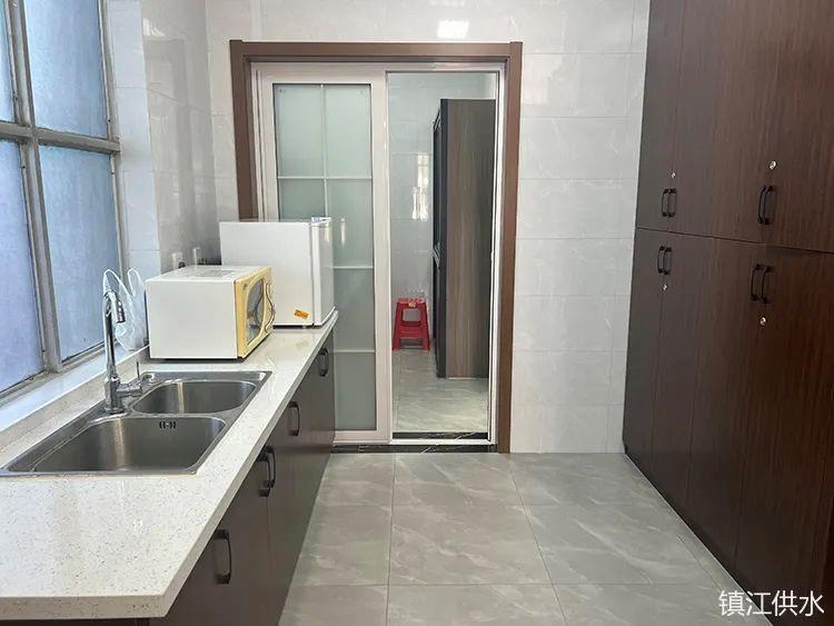 原本丁卯泵站电房和值班室在一起,值班人员一直深受机组运行的高温、噪音困扰。此次改造将值班室与电房分隔开,新建值班室内只保留操作台,没有了原先的噪音和高温干扰,极大地改善了工作环境。同时值班人员通过电脑就可操作使用设备,查看到所有生产运行数据、水质数据,减轻了劳动强度。此外,改造后的值班室还设立了生活区和卫生间,这些贴心设计改造让职工工作更加舒适安心,进一步增强了职工的主人翁意识,调动他们的参与性和主动性,真正做到从实际出发,将改造工作做实做细。