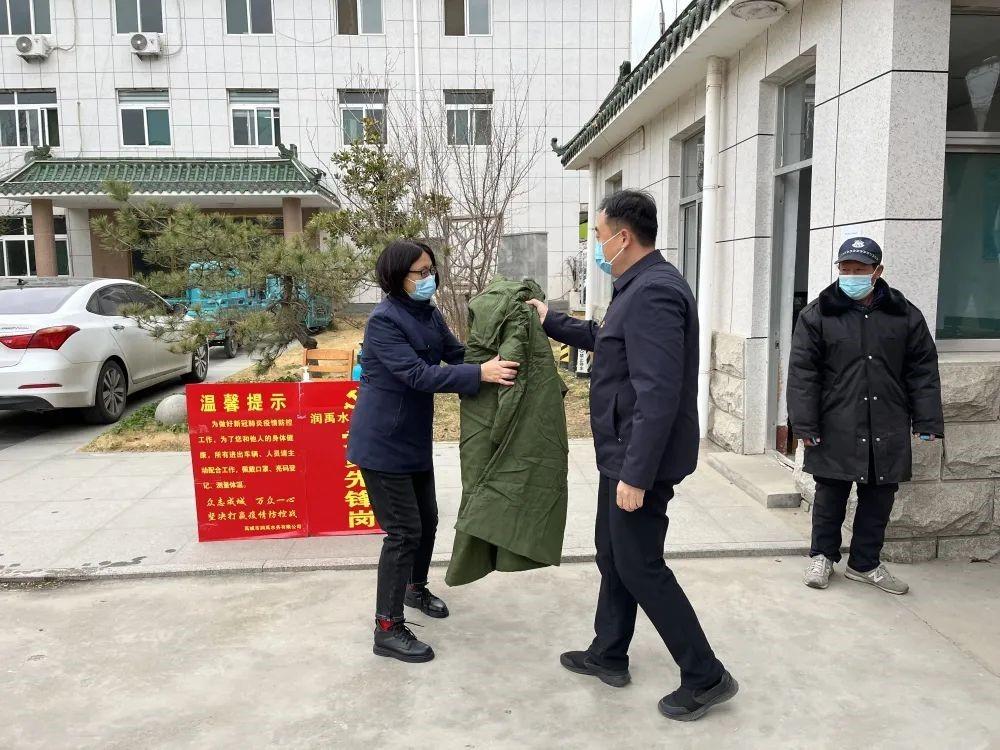 3月17日,禹城市受强冷空气影响,气温明显下降。润禹水务有限公司十分关心牵挂在寒风低温下坚守防疫一线值班值守的工作人员。公司党支部书记、董事长、总经理李卫东分别到公司厂区、共驻共建单位、公司家属院等主要防疫值班点看望慰问坚守在疫情防控一线的工作人员,为他们送去防寒大衣等物品。