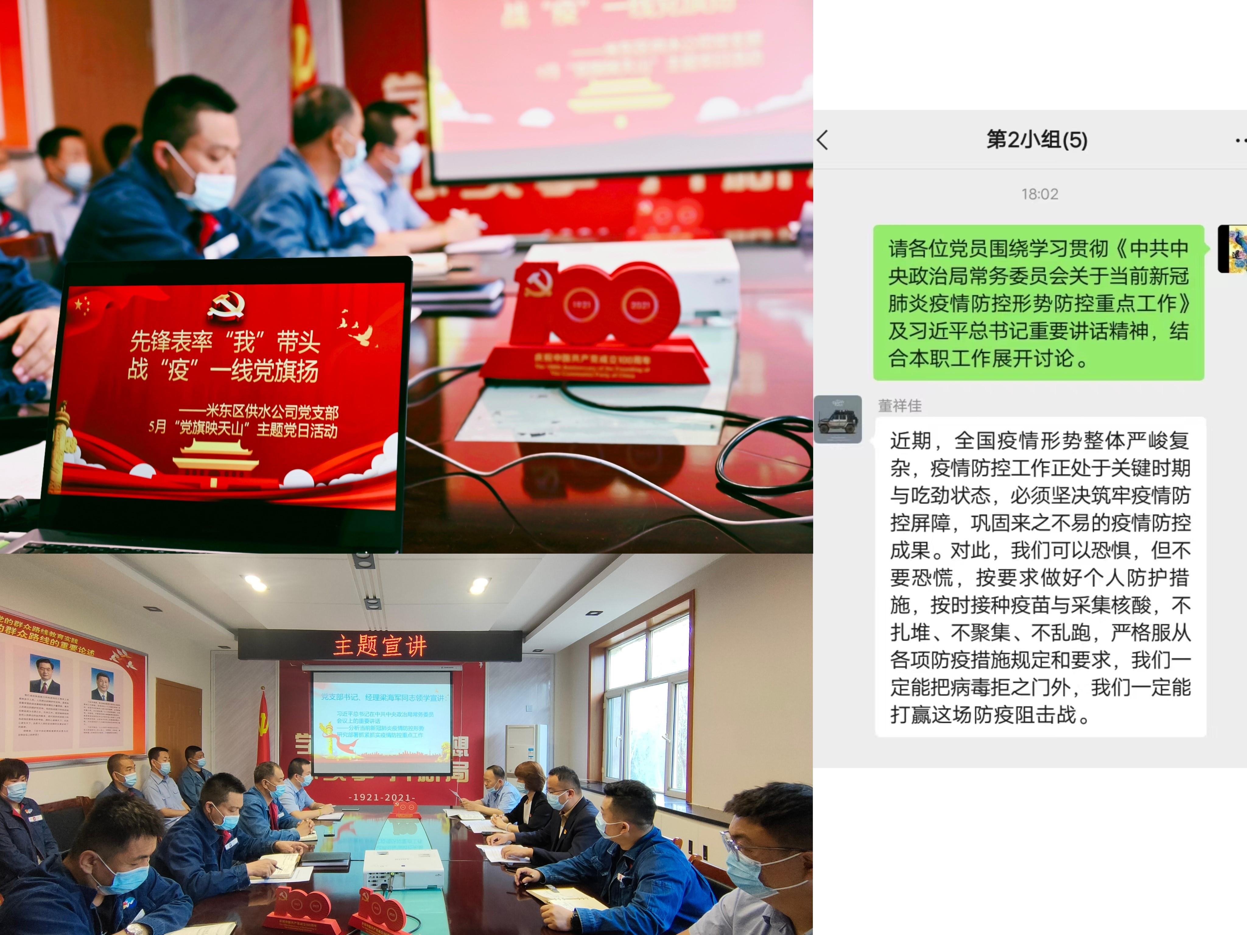 疫情就是命令,防控就是责任。当前,疫情形势复杂多变,米东区供水公司党支部把主题党日活动开在“疫”线,积极动员全体党员、青年和积极分子,充分发挥先锋模范和示范带动作用,把人民群众生命安全和身体健康放在第一位,供好水,服好务,做到守土有责,守土尽责,让党旗在一线高高飘扬!