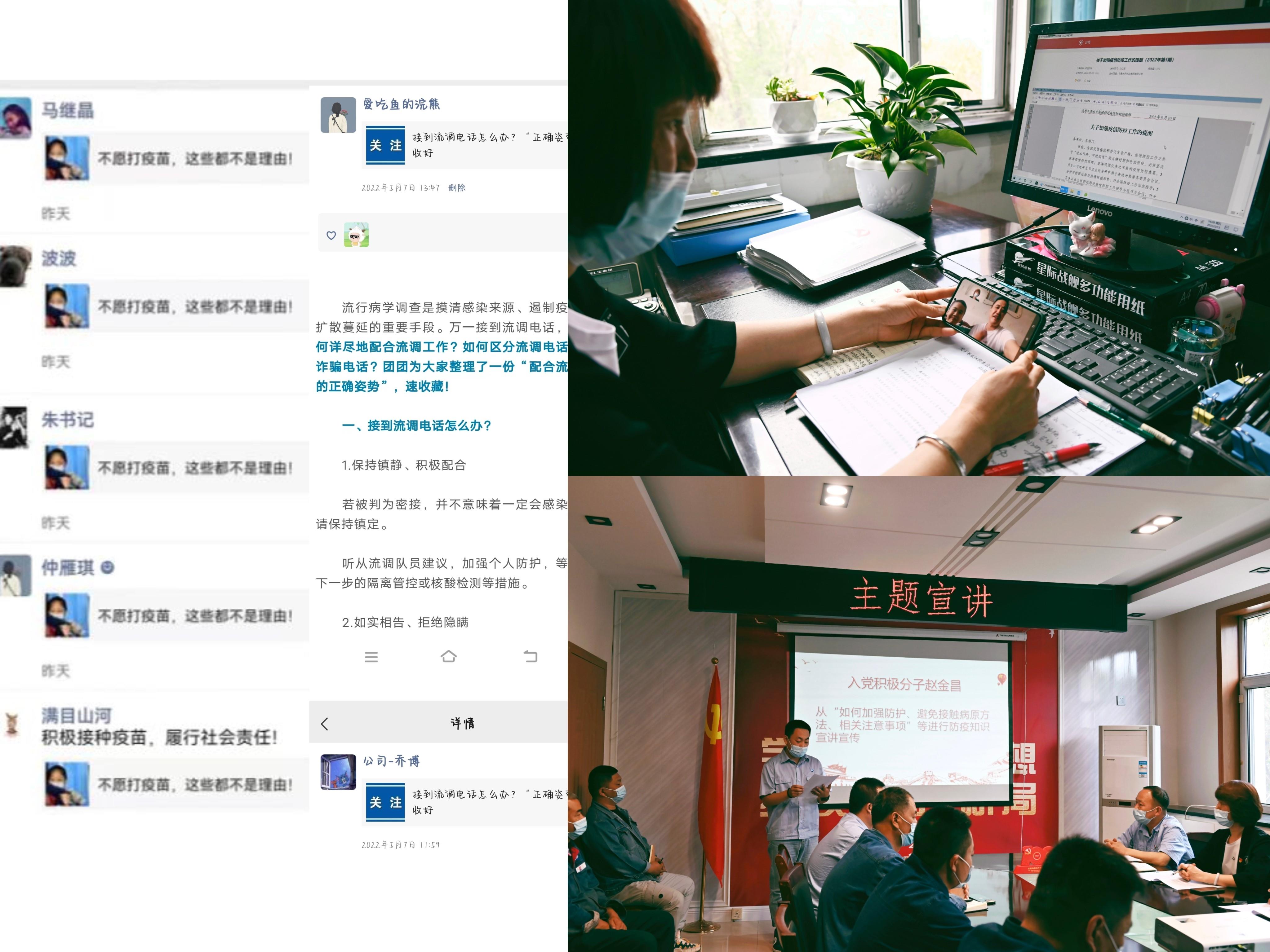 当前,全国疫情多点散发,无症状感染者比例持续升高,疫情防控形势严峻复杂,为保证疫情防控常态长效,有效避免疫情风险,倡导大家养成良好的生活习惯,防疫专干赵金昌同志从如何在日常工作和生活中加强防护,怎样避免接触病原等方面进行了防疫知识宣讲倡议。同时,公司党支部通过微信视频等方式,号召居家隔离人员要严守防疫规定,做好个人防护,及时上报健康信息;合理规划作息,保持身心健康。并扎实开展疫情防控知识宣传,提高大家疫情防范意识。