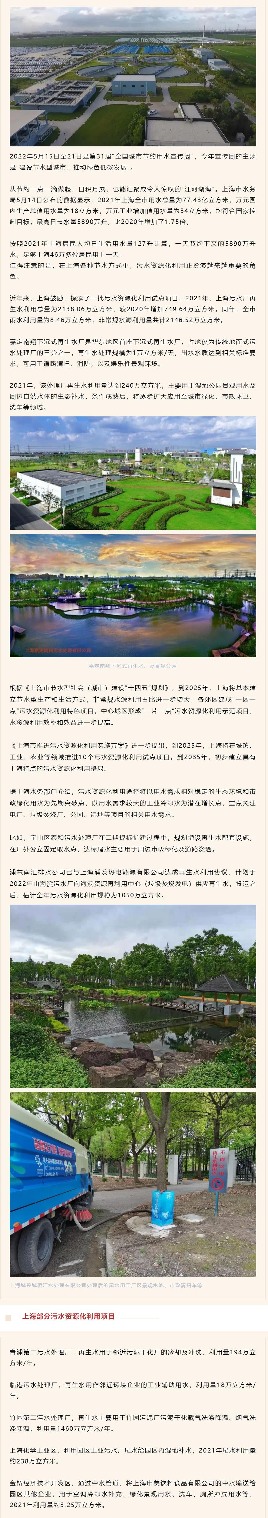 一天省下的水最多够46万多位居民用一天,上海全面推进污水资源化利用