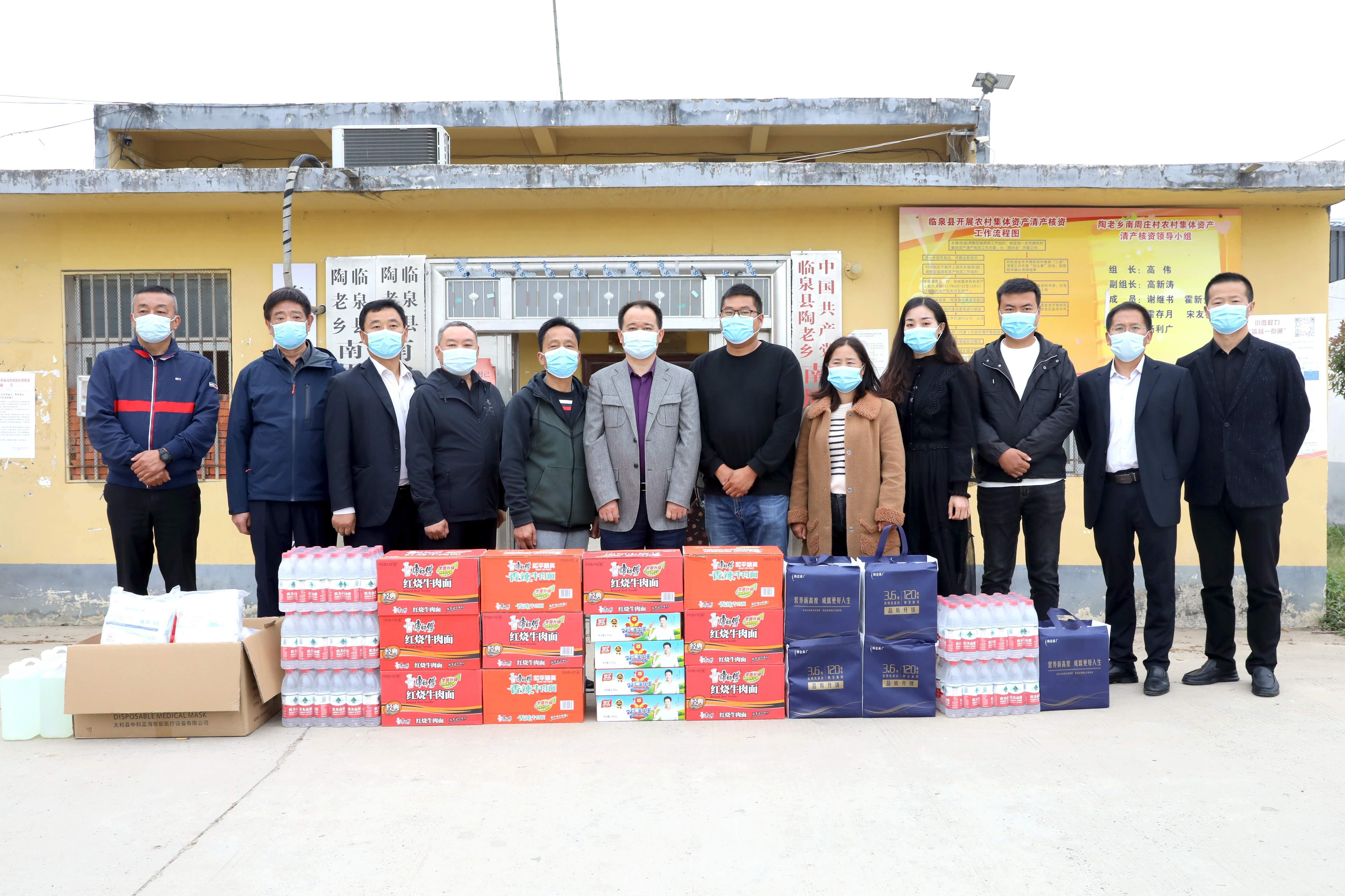 5月13日,阜阳市供水总公司党委书记、总经理张传峰一行赴帮扶村——临泉县陶老乡南周庄村开展疫情防控走访慰问,并送去了口罩、酒精、方便面、火腿肠、矿泉水等物资,用实际行动助力帮扶村巩固疫情防控成果。