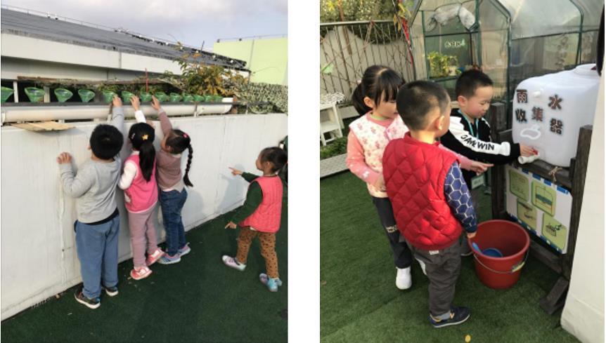 幼儿园利用屋顶菜园的空间,建设了雨水收集设施,教导学生利用雨水浇灌菜园,引导幼儿树立节水意识。