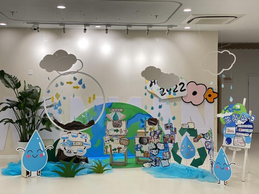 结合“世界水日”、“世界环境日”等主题活动,进行幼儿园环境创设,使幼儿受到潜移默化的教育和影响,懂得惜水、节水的重要性。