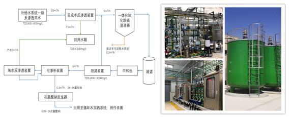 图6申能崇明发电厂废水零排放工艺示意图及现场设备