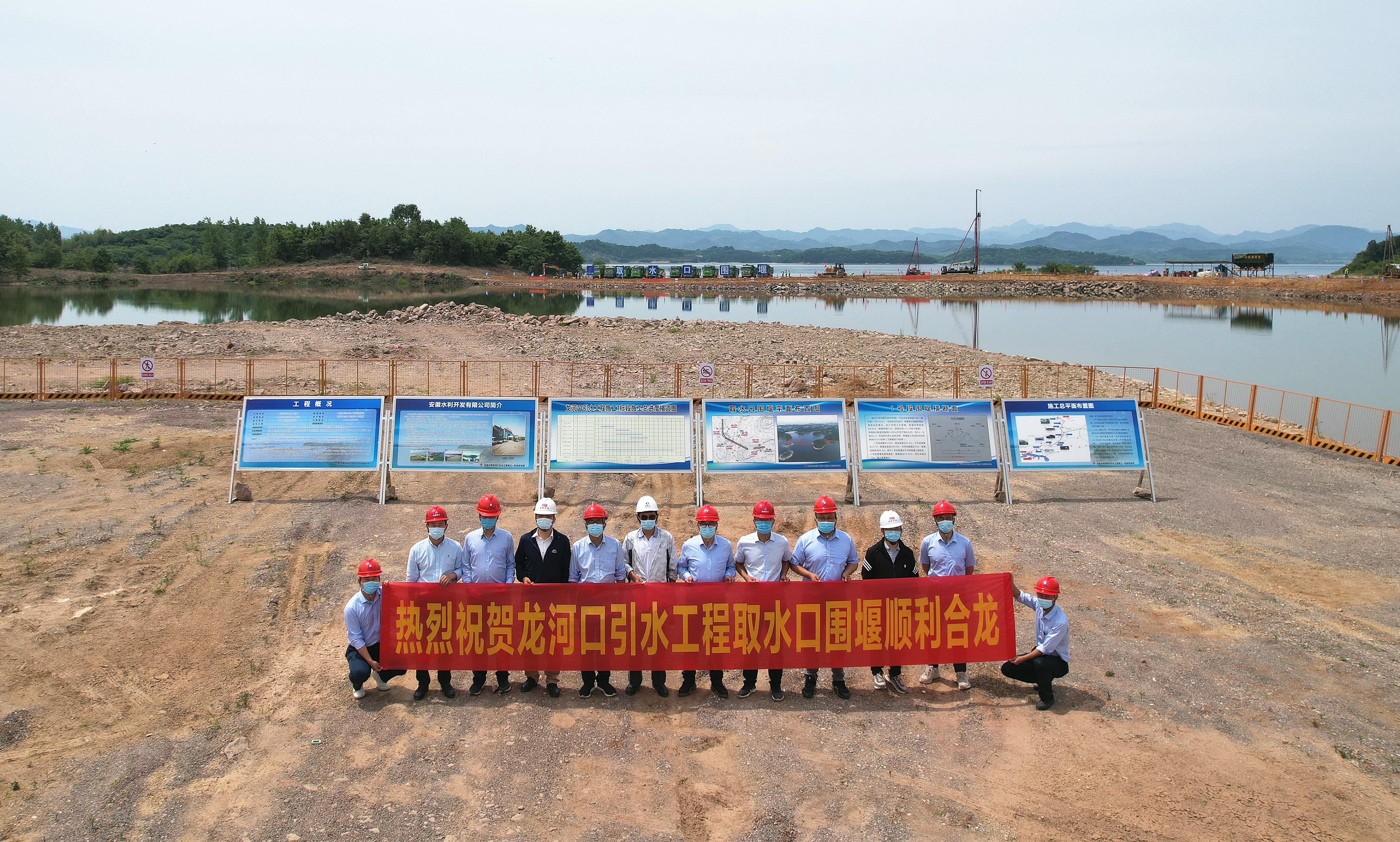 龙河口引水工程取水口围堰顺利合龙