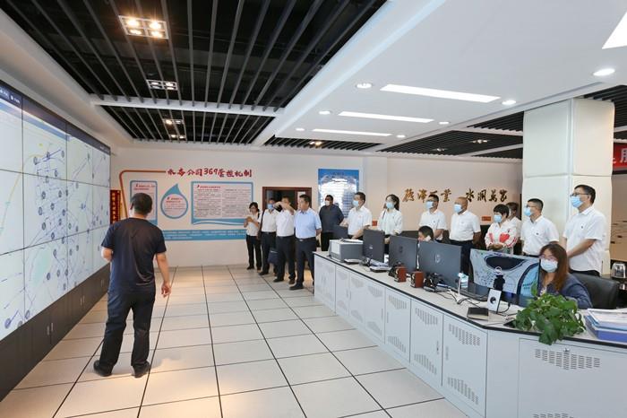 座谈结束后,第七师水管中心一行前往公司调度室参观了智慧水务管理平台,生产运行部主任刘宁通过实际操作,结合生产案例介绍了智慧水务管理平台在工作中实现的信息远传、实时监测、辅助调度、动态分析和科学管理等主要用途。随后,第七师水管中心一行在公司业务部门的带领下参观了党建示范点、西郊水库和九龙潭出水口。