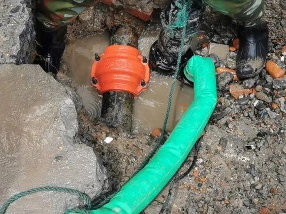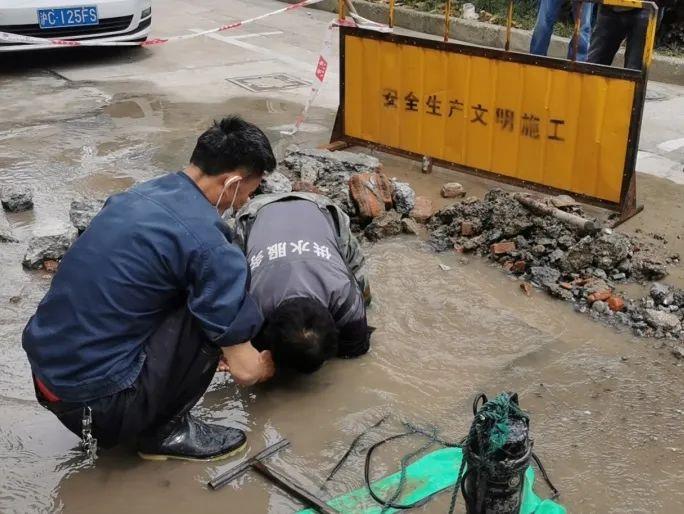 近日,公司接到热线工单,反映南桥育秀某小区地下水管漏水。公司“安心抢维修突击队”立即赶赴现场查看,漏水区域已造成大面积路面积水,且无法判断水泥路下具体漏点点位。抢维修人员立即关闭小区总阀门,做好现场维护,“安心查漏小分队”通过查漏仪准确定位DN100总管上的漏点,随即开挖抢修,用时2小时在中午高峰用水前修复总管漏点,确保了该小区将近200户居民的正常生活用水。