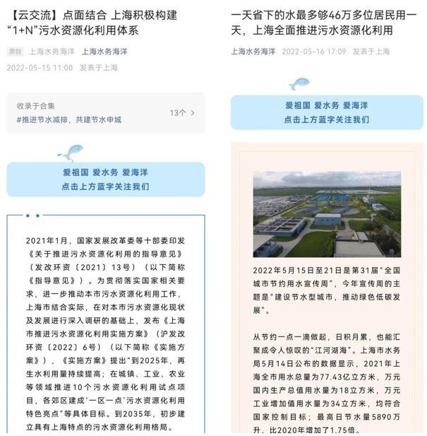此外,“云”上宣传周遴选崇明、临港、青浦、嘉定四个污水资源化利用特色亮点区域和一批用水指标达到先进水平,节水工作有亮点、有特色、有成效的节水示范型机关(单位)、学校、小区、工业园区、农业园区,向社会汇编展示节水优秀案例,让优秀节水载体发挥示范引领作用,营造全社会比学赶超,争创节水特色的氛围。