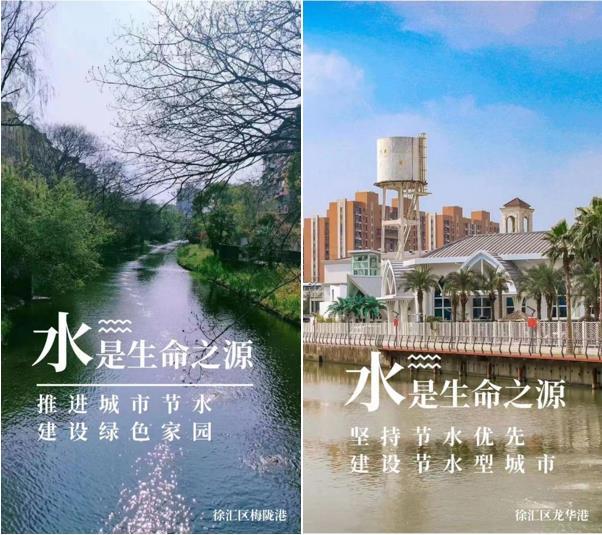徐汇区以区域内美丽河道为“主角”拍摄制作一系列精美的节水海报,宣传节水口号,号召社会公众坚持节水优先,养成良好节水习惯;坚持以水定城,共同建设碧水家园。