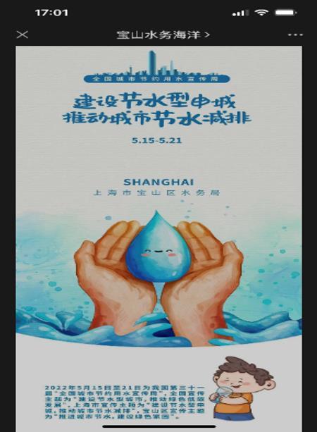 5月15日至5月21日是第31届“全国城市节约用水宣传周”,上海在严格落实疫情防控工作的基础上,紧紧围绕“建设节水型城市,推动绿色低碳发展”“建设节水型申城,推动城市节水减排”主题,开展“云开幕”“云倡议”“云互动”“云课堂”“云交流”“云展示”等丰富多彩的线上节水宣传活动,各领域、各行业共同参与,激发全社会参与城市节水的积极性和主动性,使节水宣传落到实处、见到实效。今天,我们通过“云闭幕”的形式,为本届上海“全国城市节约用水宣传周”画上圆满句号。