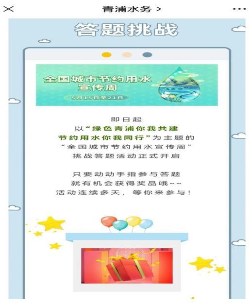 青浦区推出节水知识趣味答题,让市民更加深入了解我国与上海目前的水资源与水生态现状,传播节约水资源、保护水资源理念。