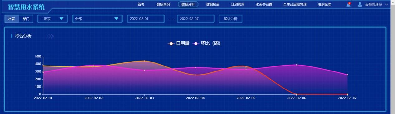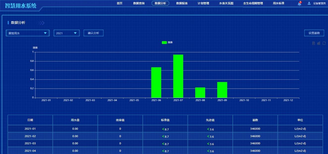 企业在开展节水型企业建设的过程中,对用水计量水表进行智能化改造,并建设了一套智慧节水管理系统。通过大数据分析,科学地对单位关键区域的用水情况进行统计,并应用多维度的用水分析模型来适应各种实际情况,最终形成用水行为分析报告,辅助企业进行管理决策,有效挖掘节水改造的潜力。