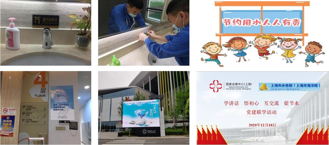 国家会展中心(上海)有限责任公司深入开展节水宣传工作,在电子大屏幕中滚动播放节水标语,在主要用水场所和器具处张贴节水标识;定期开展节水宣传主旨活动、专题培训、讲座等活动,提高全体员工的节水意识。