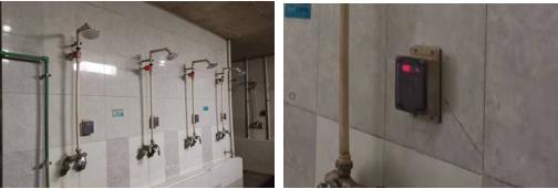 图4淋浴器(左)、浴室的IC打卡设备(右)