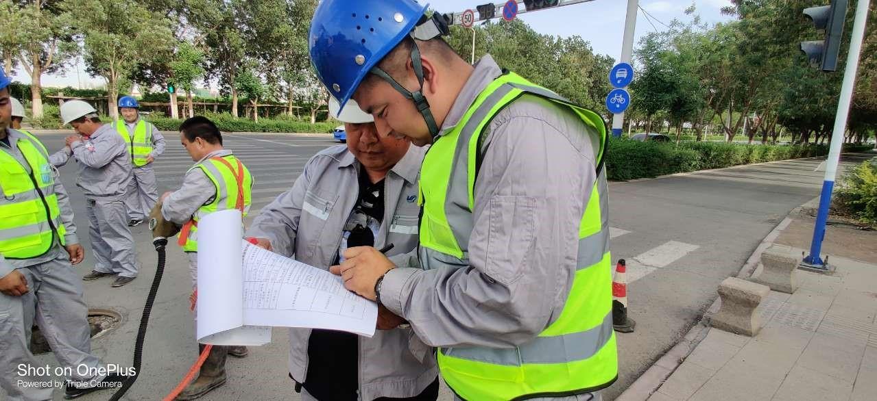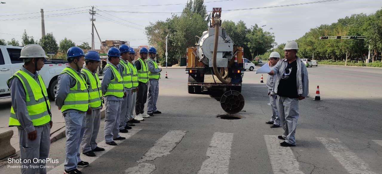 为强化有限空间作业安全管理,有效预防和杜绝有害气体中毒、缺氧窒息等安全生产事故的发生,切实保障员工生命安全,真正将安全操作意识及程序内化于心、外化于行,2022年5月20日下午,吐鲁番市万泉水务有限公司安装维修队在高昌区东环路与前进路交叉处一排水井进行有限空间作业清淤演练,演练前维修队提前制定好演练方案,内容紧贴实战要求,明确现场负责人、现场作业人员、监护人员、后勤保障人员工作职责及应急车辆。