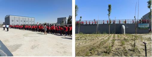 自来水是自己来的吗,我们生活的污水去了哪里,纯净水厂是怎样制造生活出来的,带着这些疑问,为了解答学生们的日常疑问,进行爱国科普教育,和田市教育局组织100名小学生于6月2日参观和田市第二水厂及河东污水厂,早晨10点30半,两辆载有百名小学生的班车缓慢进入河东污水厂,经过测体温、查看行程码等流程后,在关明礼厂长的热情接待下,带领学生参观污水处理流程,在厂区生化池边,播种的万寿菊、百日草、波斯菊竞相绽放,郁郁葱葱的胡杨、法桐、白蜡、合欢树围绕院子四周,在生化池、膜处理车间、格栅兰、应急调节池等地方,给学生讲解污水处理工艺,处理后的污水达标排放在东风干渠,以后将实现中水回收利用,用于城市绿化带浇水。