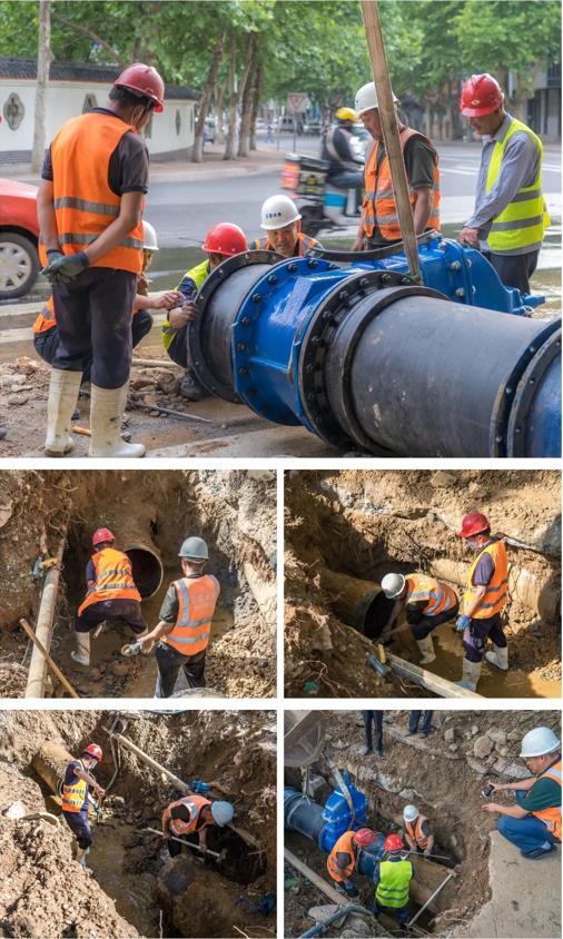 6月6日23时许,城区解放路与金沙路交叉路口供水主管道破裂,造成周边部分区域暂停供水。突发险情就是命令,保障供水就是责任,县水务集团立即启动供水应急预案,第一时间组织人员进行抢修,抢修人员克服路面开挖困难、作业面积较窄等实际困难,轮番上阵、连夜奋战,争取以最快的速度完成抢修作业,于6月7日21时恢复正常用水。