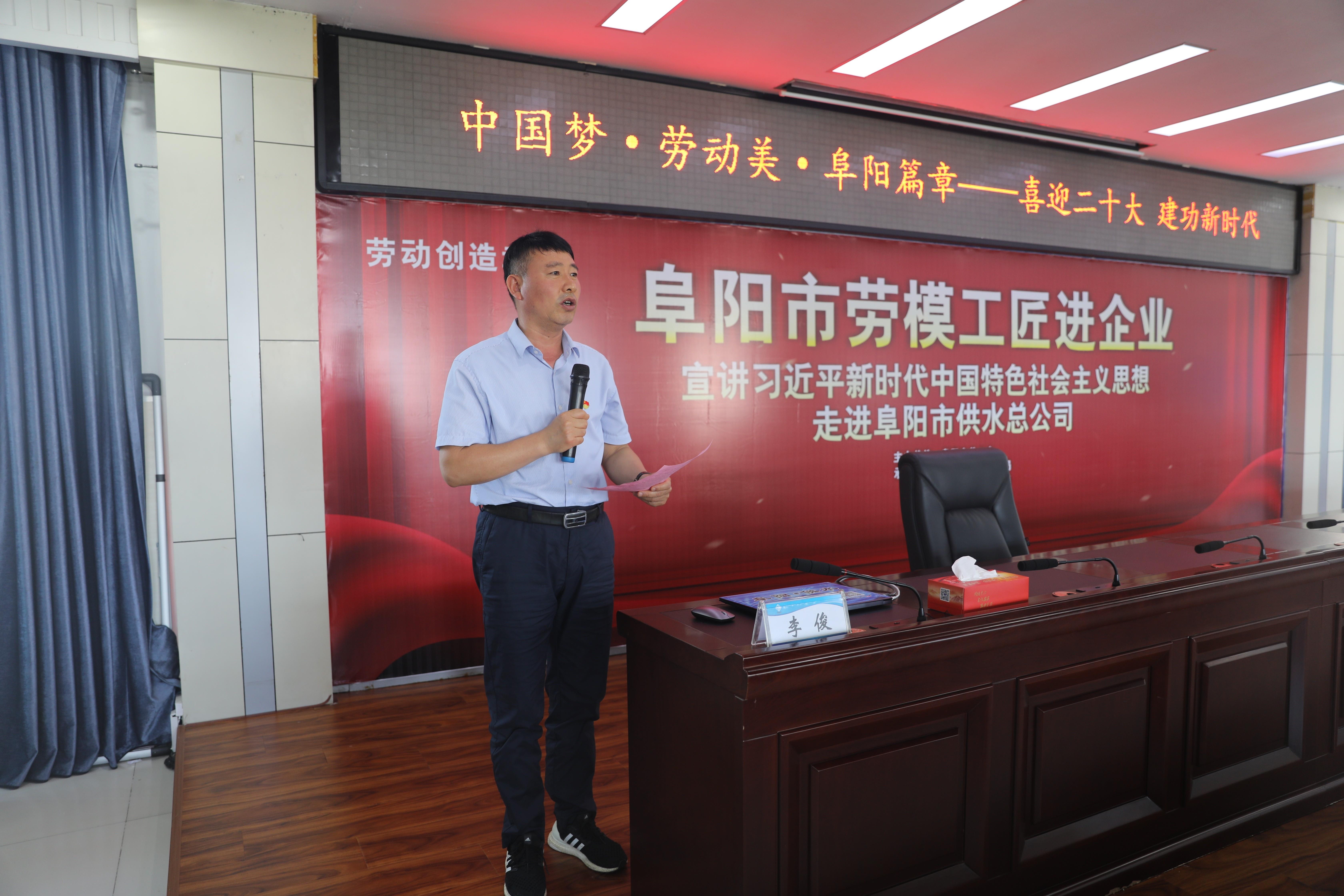 为践行社会主义核心价值观,大力宣传和弘扬劳模精神、工匠精神,进一步激扬供水活力,6月16日下午,由市总工会主办的劳动创造幸福——阜阳市劳模工匠进企业·宣讲习近平新时代中国特色社会主义思想走进市供水总公司。市城乡建设局党组成员、副局长李俊出席宣讲会。