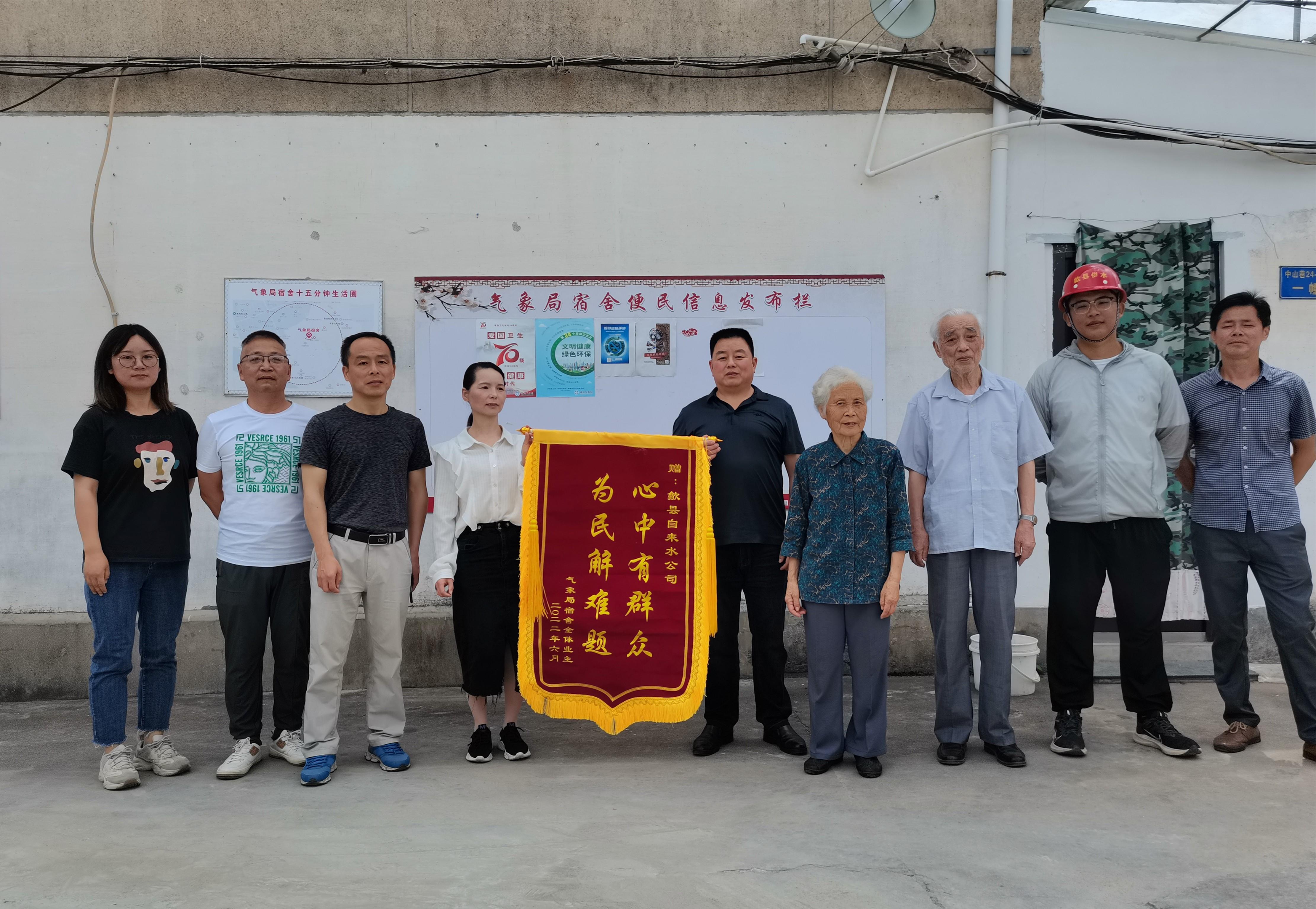 6月17日上午,歙县气象局宿舍居民代表将一面写有“心中有群众为民解难题”的锦旗送到歙县自来水有限公司相关人员手中,对该公司高效快捷的供水服务表示衷心感谢。