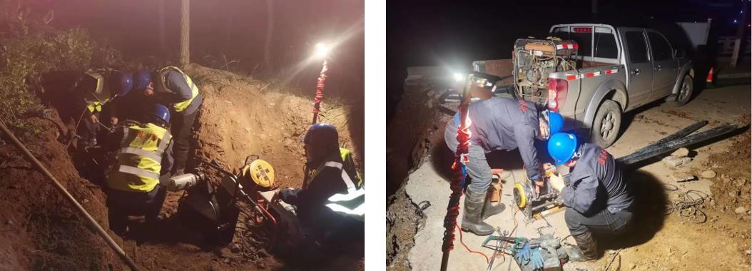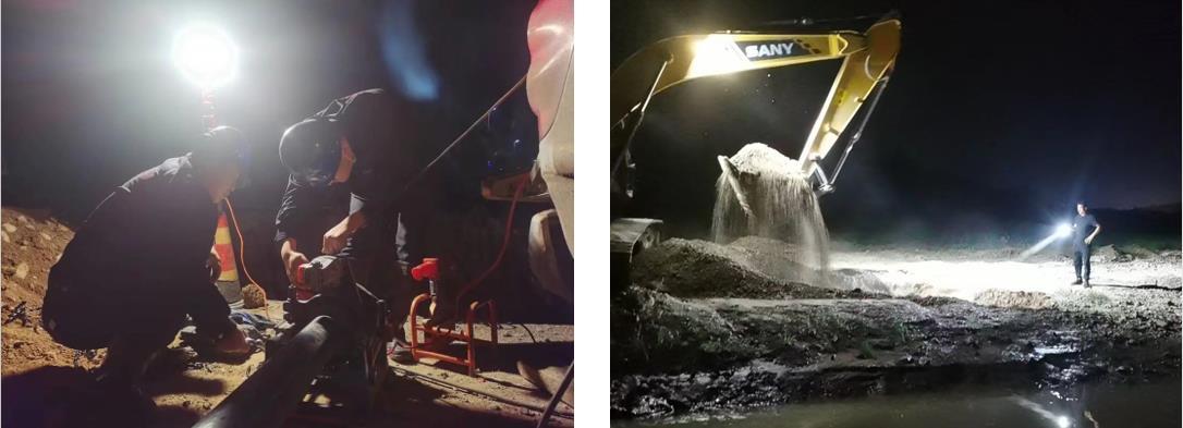 为保证尽快恢复供水,党员领导干部坚持在一线拍板、一线调度,迅速确定了抢修方案,保障抢修物资和车辆及时到位,第一时间开展抢修工作。由于河道作业漏水点所处位置水流急、流沙多、杂草丛生,施工环境复杂,夜间视线模糊,抢修难度增加,经过多次对漏水区域河道的开挖和改道,最终找到漏点位置。尽管河水不断涌入工作坑,但全体维修人员没有丝毫畏难情绪,凭借丰富的维修经验和全体维修人员的团结协作,经过6个小时的紧急抢修,6月26日凌晨3点,抢修工作顺利完成,并提前恢复该片区正常供水。