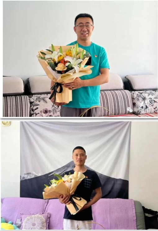 7月1日是中国共产党的生日。在这个特别的日子里,锡市给排水公司机关党支部开展了“喜迎二十大、永远跟党走”主题党日活动,来到刚刚结束隔离的两名隔离酒店一线防疫志愿者国佳、王之记同志家中走访慰问,送上鲜花和慰问品,将温暖和关怀送到他们身边。
