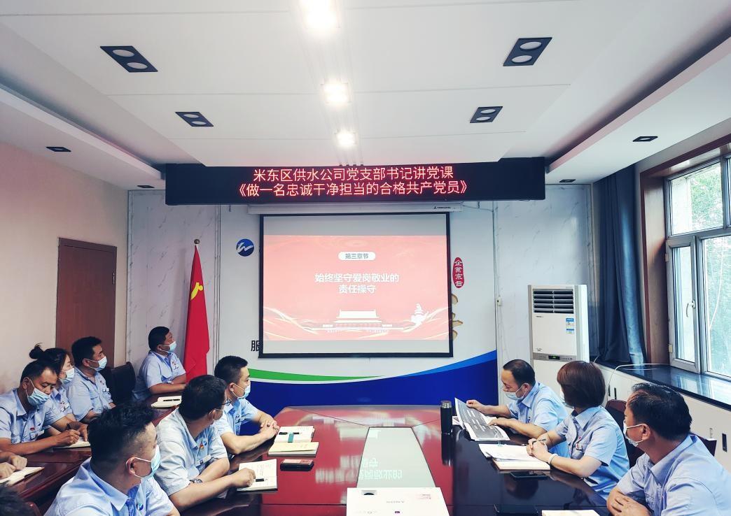 米东区供水公司党支部书记、经理以《做一名忠诚干净担当的合格共产党员》为题,从忠诚不只是喊口号,更应体现在岗位上;清醒认识我们当前的工作状态;始终坚守爱岗敬业的责任操守;时刻保持爱岗敬业的精神状态四个方面,为全体党员上了一堂关于“对党忠诚”的党课。并结合供水公司实际,要求全体党员要立足本职岗位,扎实做好各项工作,用实际行动为党庆生,迎接党的二十大胜利召开!课后,党支部副书记朱传芳谈到:“对党坚定,信仰忠诚,是共产党人永葆先进的力量之源。我们要以革命前辈、时代楷模为镜,见贤思齐,正心修行,战胜前进道路上的种种风险和挑战,同时筑牢精神高地,避免信仰滑坡,保持共产党人为人民服务的政治本色,将初心使命贯彻到工作实际中。”