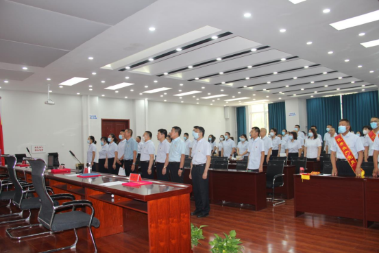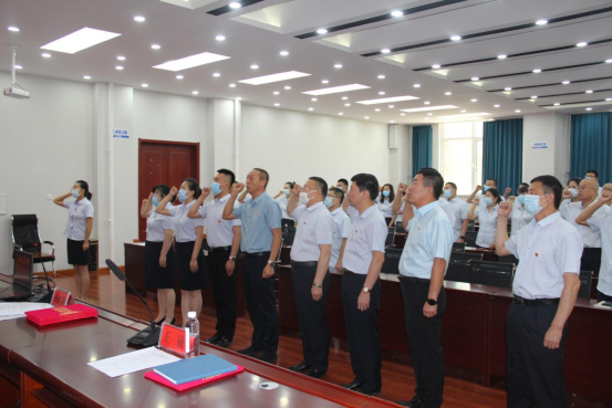大会在雄壮的国歌声中开始,随后,由党委书记、总经理杨东和同志带领全体参会党员,重温入党誓词。面对鲜红的党旗,誓言铿锵有力,展现了全体参会党员高昂的斗志、坚定的信念和对党的忠诚。