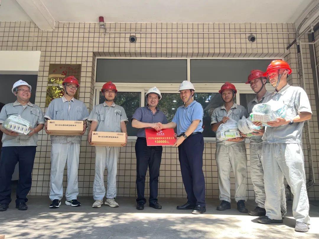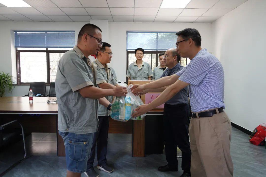 同日,公司党委书记、执行董事唐玉才和党委副书记、纪委书记刘辉冒着酷暑来到和尚山水厂巡检组和维修组,为高温期间坚守在供水一线的基层职工们送去酸梅汤、藿香正气液等防暑降温慰问品。唐玉才详细询问了最近高温天气生产保供情况,叮嘱大家在高温天气下户外巡检和作业要注意避暑,把职工的身体健康放在首位,切实做好安全生产和防暑降温工作,全力保障高温天气城市供水安全稳定运行。