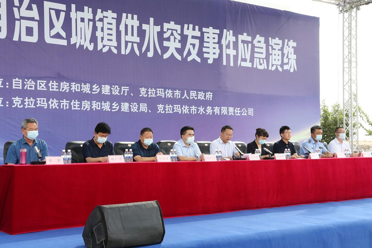 自治区住建厅抗震和应急保障处处长高朝建、城市建设处处长木塔力甫·艾力,克拉玛依市住建设局党组副书记、局长廖帆,克拉玛依市水务公司党委书记、董事长邓洪等出席本次演练活动。