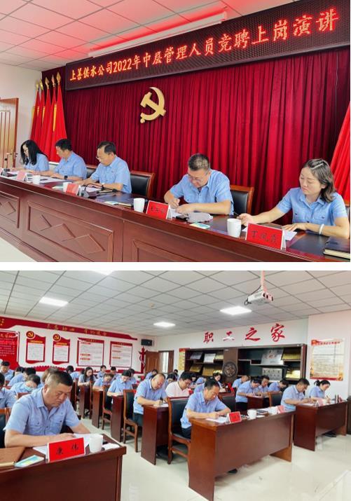 截止目前,已严格按照《伊金霍洛旗上善供水有限责任公司2022年中层管理人员竞聘上岗工作方案》要求,顺利完成竞聘上岗有关工作,24个岗位综合成绩排名第一的竞聘人员走上了中层管理岗位。