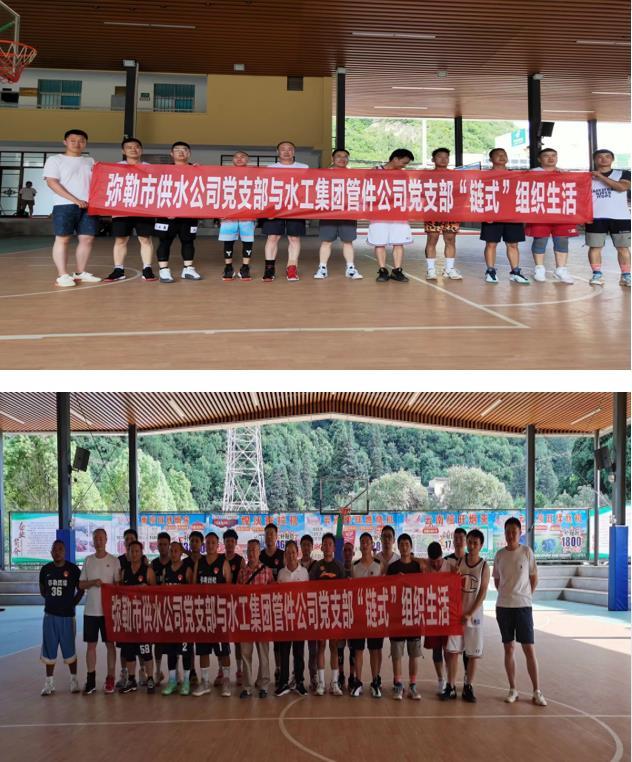 2022年7月16日,弥勒供水公司党支部与水工集团管件公司党支部开展“链式”组织生活,走访西三红色革命老区,学习当地革命先烈的英雄事迹,从如何抓党员、员工思想教育、支部组织建设、阵地建设、人才队伍建设等方面一起探讨交流党建引领企业发展新思路,新举措,做到党建工作与推进供水工作发展双融合。并与革命老区团结篮球队进行了一场别开生面的篮球友谊赛。