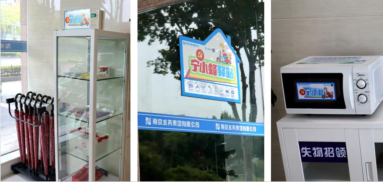 首个“宁小蜂驿站”位于水务集团城西营业厅(虎踞南路58号)北侧的公共服务区域内,驿站视野开阔敞亮,设计自然清新,党史书籍、应急医药箱、雨伞等物品摆放有序,洗手间、无线网络、充电器、微波炉等设备一应俱全。