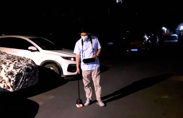 随着三九五九巷小区保安手机上传来“12点整”的报时声,每家每户都已进入梦乡,朱栋煜和王东背着10多斤的听漏仪穿梭在大街小巷,重复着听音、判别、标记的动作。