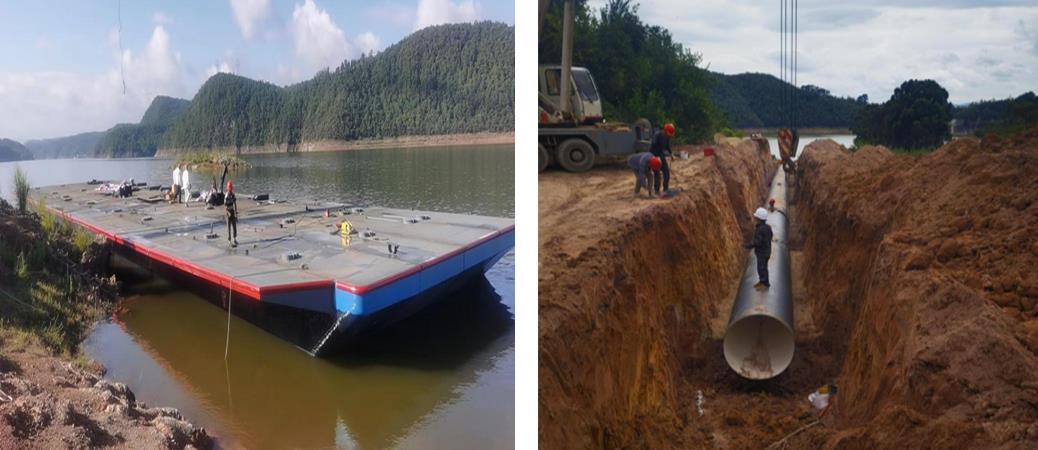 在市委、市政府及相关部门的帮助下,玉溪市供排水公司在积极解决好项目用地、资金及建设材料供应等问题的前提下,于2022年6月10日全面启动玉溪市北片区供水(一期)工程东风水库取水工程建设。该项目建设内容包括:新建东风水库取水泵船1座,泵船船体设计规模15万立方米/日,设备按近期规模7.5万立方米/日安装;新建东风水库D1220×10原水管约835米。项目预计投资约4000万元。7月底主体工程完工,并能满足临时应急取水条件。