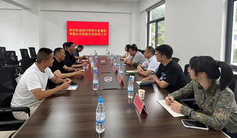 8月6日,浙江绍兴柯桥水务集团董事长周俭、集团副总经理胡晓峰协同绍兴柯桥供水有限公司总经理及高层管理人员一行,至嵩明盟源自来水有限公司交流指导。双方就供水管网漏损控制、表计管理、企业管理、用户服务和供水营销等工作进行座谈交流。