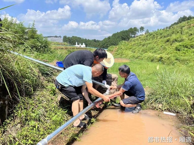 渝北区兴隆镇小伍村,两江水务公司牛头岩水厂工作人员正顶着烈日抢修农村供水设施