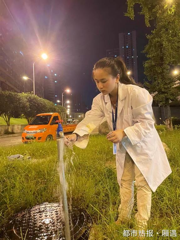 巴南区土桥,渝南自来水公司化验员在晚高峰时段取样检测管网水水质情况