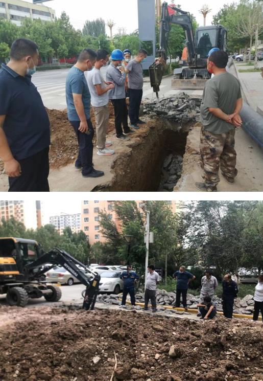 2022年8月10日,库车水务集团昊源城市供水有限公司接到住建局通知有用户反馈清风苑小区11号楼前面发生了跑水,在住建局的协调下,我公司与小区物业公司迅速展开了管道抢修工作。接到跑水情况后,我公司立限启动疫情管控情况下应急预案,在向相关部门报告的同时,组织应急抢修分队赶赴现场,抢修人员顺管道分布走势精确找出故障点,发现跑水原因是DN100地下管道焊接处破裂。