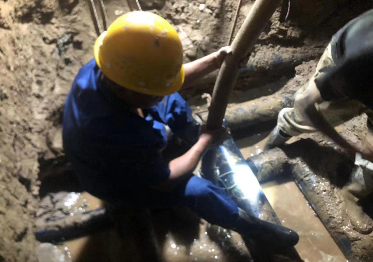 由于地下管线错综复杂,并且作业面狭窄,无法使用挖掘机作业,这给施工带来很大难度。为保证地下管线安全,抢修人员决定以人工方式挖出淤泥,虽然坑内泥泞不堪,积水溅起,但他们奋力抢修,丝毫没有懈怠。借助强光灯,加班加点,经过14个小时的连夜奋战,于11日早晨6点30分,恢复供水。