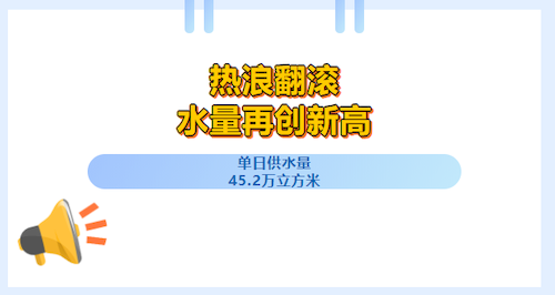 今年入夏以来,受副热带高压影响,高温天气逐渐霸屏,镇江连续发布高温红色预警信号,极端最高气温达40℃以上,市区最高日供水量已连续多日突破43万立方米/日,8月9日达到45.2万立方米/日,刷新镇江2018年以来夏季高峰期日供水量的最高记录。