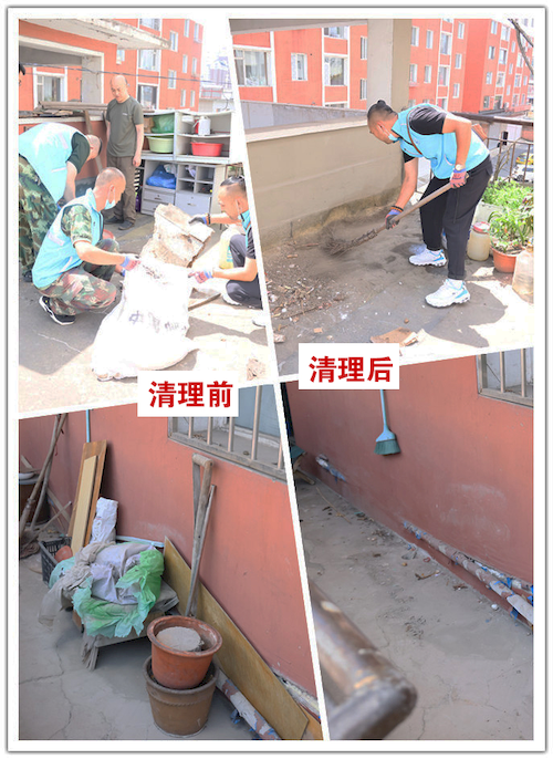 活动中,志愿者们穿着统一的志愿者服装,在33度的高温天气下,头顶烈日与社区网格员组成“大扫除清理队”清理楼道卫生死角,包括清理堆积杂物、搬运丢弃旧家具等,他们与高温抗衡,用汗水铸造着城市的美好,经过共同努力,小区环境焕然一新。