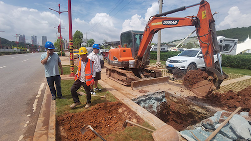 2022年7月初,楚雄市高新区实验学校给水安装工程进场施工,计划工期:10天,工程内容包括:在永兴大道西侧原有DN800供水管道开口,管道横跨永兴大道布置,过路方式采用路面开挖,管径为DN400,路面开挖分为三次进行,保证道路正常通行。项目的实施解决了楚雄市高新区实验学校紧迫的用水问题,优化了楚雄高新区高铁新城片区供水管线资源配置,提高了供水效率,有利于保障人民的生活质量和健康水平,促进精神文明建设、维护社会稳定及促进区域经济发展。