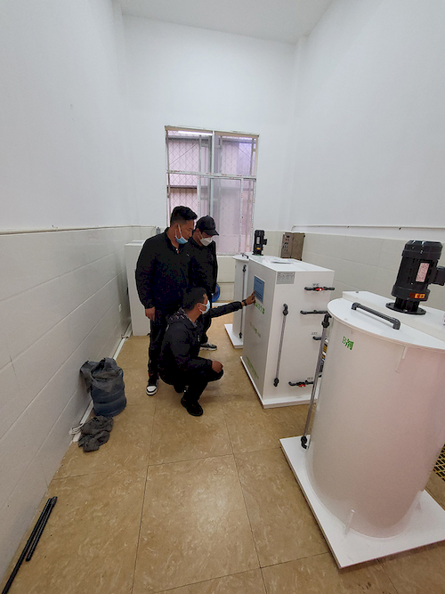 公司联系云南联博生物科技有限公司协助检查安装二氧化氯消毒设备。该公司及时安排工作人员前往德钦县。公司董事长阿茸与县防疫指挥部对接,对该公司工作人员给予放行。在公司负责人的带领下对主城区供水厂设备进行安装、检查、更换、调试工作。