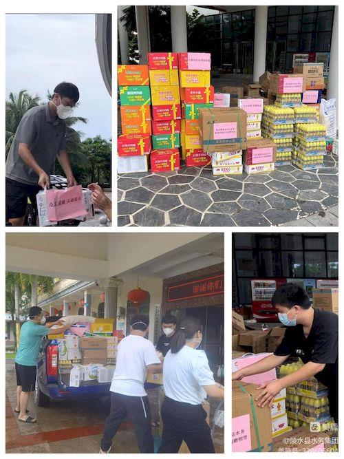 当天上午,所有物资在集团本部前坪集中,简短的捐赠仪式过后,车队工作人员将物资搬运上车,于中午运送到达英州镇、新村镇、黎安镇,下午将物资送到了驻扎于温德姆酒店的县人民医院医护人员手上。本次活动共捐赠N95口罩3000个、医疗垃圾袋3000个、消毒液8箱、纯牛奶2000包、面包40箱、方便面1320罐、八宝粥1500罐、饮品2000瓶、水果25箱、月饼50筒等物资。
